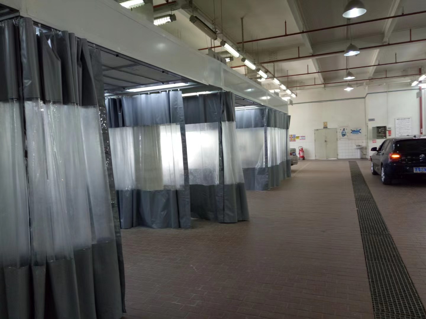 房体系统:1、前面/中间共用处和最右侧配喷粉1.2镀锌板制作顶挂梁和防静电手动PVC软帘,软帘颜色:上下颜色可选,中间透明,软帘厚度:0.5mm;软帘两侧内置磁铁,底部带铁块垂重;软帘滑动采用定制铝合金轨道,配耐磨金属滑轮和挂钩(中间共用软帘分成两块制作,方便前后操作);